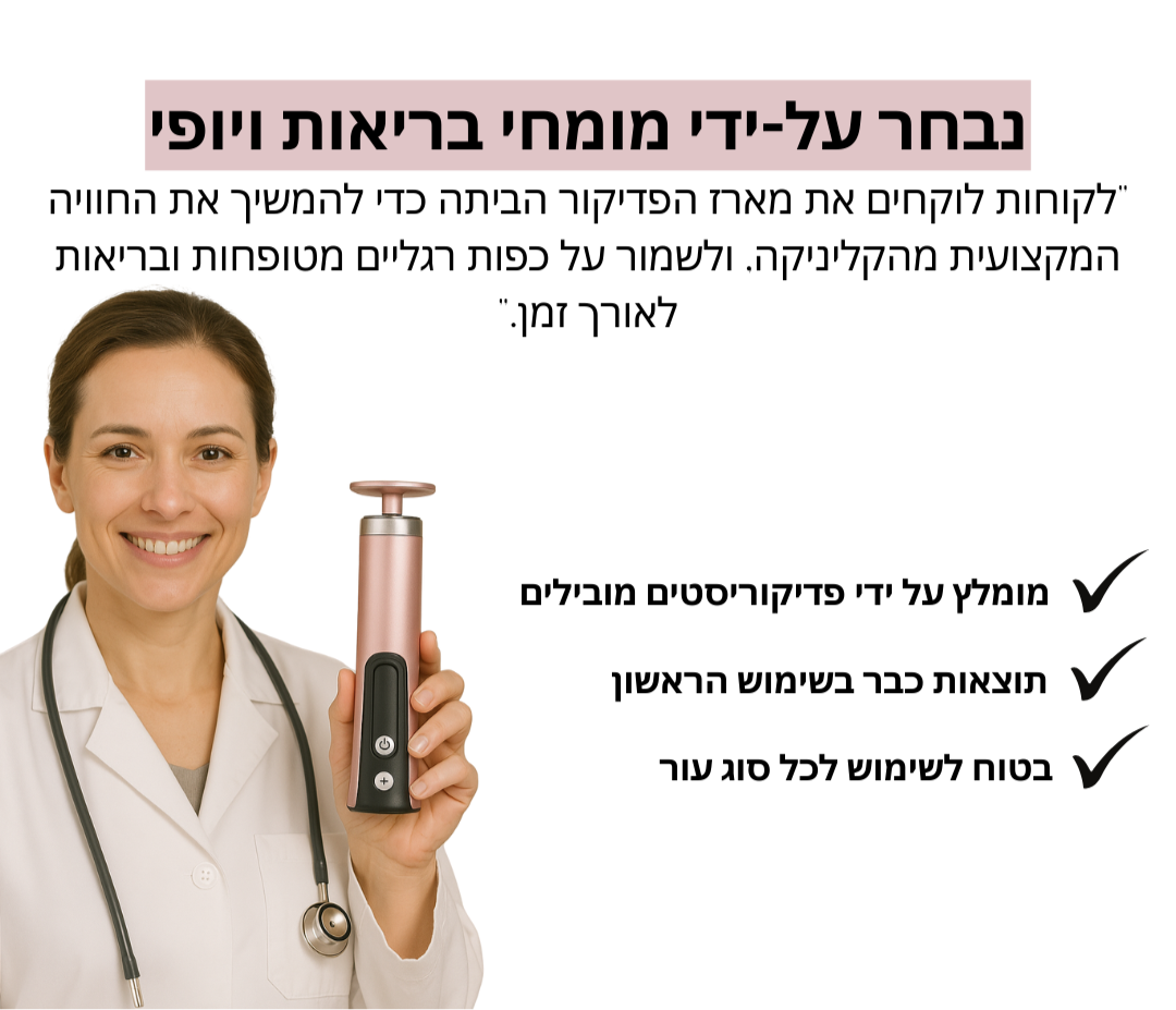 4.מתחילים בעוצמה החלשה ביותר ומעבירים על העור המת בצורה עדינה, ומעלים עוצמה בהדרגה ובהתאם להרגשה.