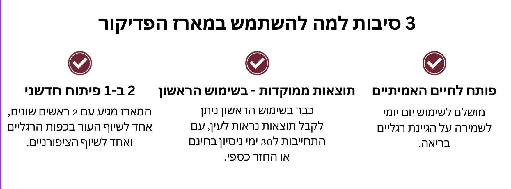 תוצאות נראות לעין כבר לאחר השימוש הראשון